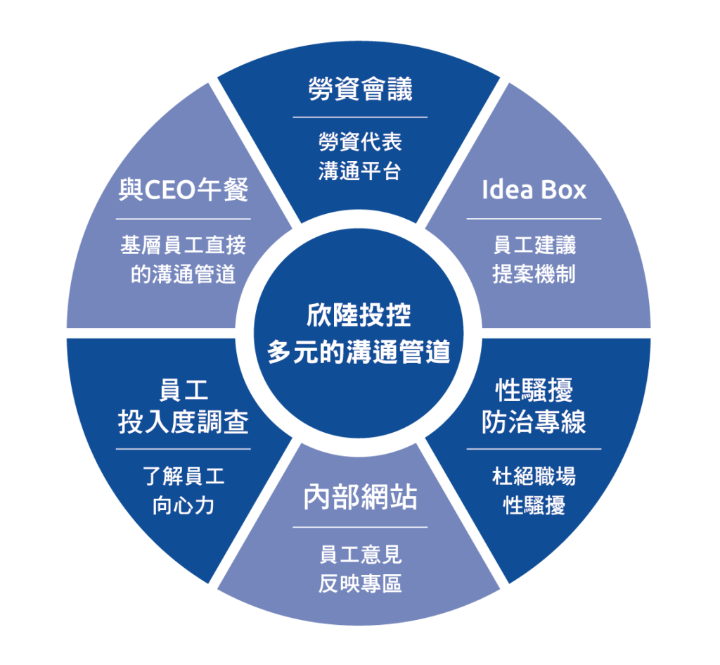 持續提供多元且暢通的溝通管道,積極傾聽員工想法及期望,做為持續改善之參考。