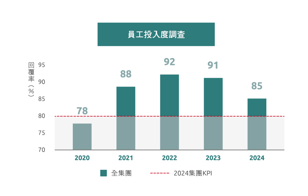 近三年員工投入度調查之回覆率均遠高於年度目標之80%,顯示員工已相當信任此溝通管道,體現員工對溝通管道之信任。