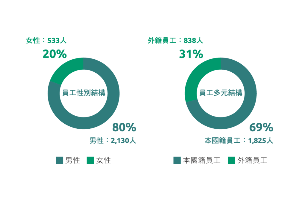 本公司長期積極推動職場多元平等與共融的理念,並透過訂定集團人力資源政策,促進職場多元化及工作平等,並全面落實在公司內部的管理措施,提供友善包容的環境並確保公平的薪酬。