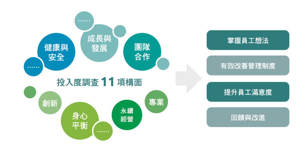 多元的回饋管道,除員工建議信箱之外,每年固定舉辦年度員工參與度調查,收集員工對工作環境的想法與建議,以及從日常工作的體驗,看到公司在不同方面的長期趨勢,並將此觀察作為公司持續改善重要參考依據。